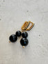 עגיל אובל עשוי כסף 925 בציפוי זהב מיקרוני, משובץ זירוקונים שחורים עליו תלויים שני חרוזי אוניקס שחורים בגודל של כ-6 מ"מ ו-10 מ"מ.