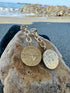 זוג עגילי צמודים לאוזן עשוים כסף 925 מצופה זהב, בעלי שיבוץ זירקון בצורת עין. עליהם תלויה שרשרת חוליות אובליות ותליון מטבע עליו חרוטה עין.