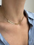 שרשרת קלילה וכיפית שלאורך החלקה הקדמי תלויים תליוני זהב בצורת טיפה.
