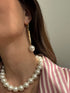 עגילים תלויים יפייפיים, המשלבים אלמנטים מוזהבים, עשויים פליז מצופה זהב, שיבוץ עדין של זירקונים ופנינת צדף עגולה גדולה.