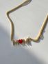 שרשרת גורמט דקה עשויה פליז מצופה זהב, תליון בעל הכיתוב MOM משובץ זרקונים ולב אמייל אדום במרכזה.