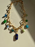 שרשרת חוליות אובליות גדולות עשויות פליז מצופה זהב בשילוב תשע תליוני אבני חן בגווני ירוק וכחול לאורכה של השרשרת. התליונים עשויים מאבנים טבעיות ולכן הצורה והגוון משתנה משרשרת לשרשרת.