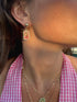 עגילי כדור צמודים לאוזן עשויים פליז מצופה זהב. מלבן בצביעת אמייל בגוונים אדום וורוד, ציור של סוסון ים ומסגרת משובצת זירקונים.