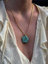 שרשרת במראה גורמט זהב עדין, עשויה פליז מצופה זהב ותליון פרח אבן אמזונייט, בגוון טורקיז, גדול ומרהיב, משובץ זירקונים.