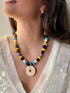 עשויה שיוב של חרוזי אקריל, חרוזי קרמיקה בעבודת יד חלים ומעוטרים ואבן חן עין הנמר.